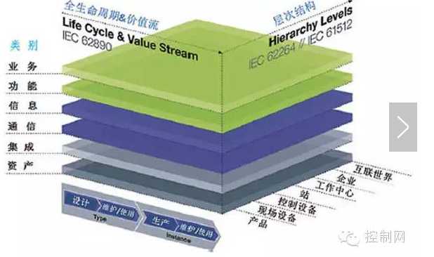 上圖是德國工業(yè)4.0的參考架構(gòu)模型,所謂三大集成,就是如圖,左邊是企業(yè)內(nèi)的網(wǎng)絡(luò)化制造體系的縱向集成(生產(chǎn)層,控制層,管理層),右下角的是企業(yè)間的橫向集成(各個產(chǎn)業(yè)鏈、工廠),再到下方的全生命周期端到工程數(shù)字化端的集成(簡單來講就是用戶/模型到設(shè)計)